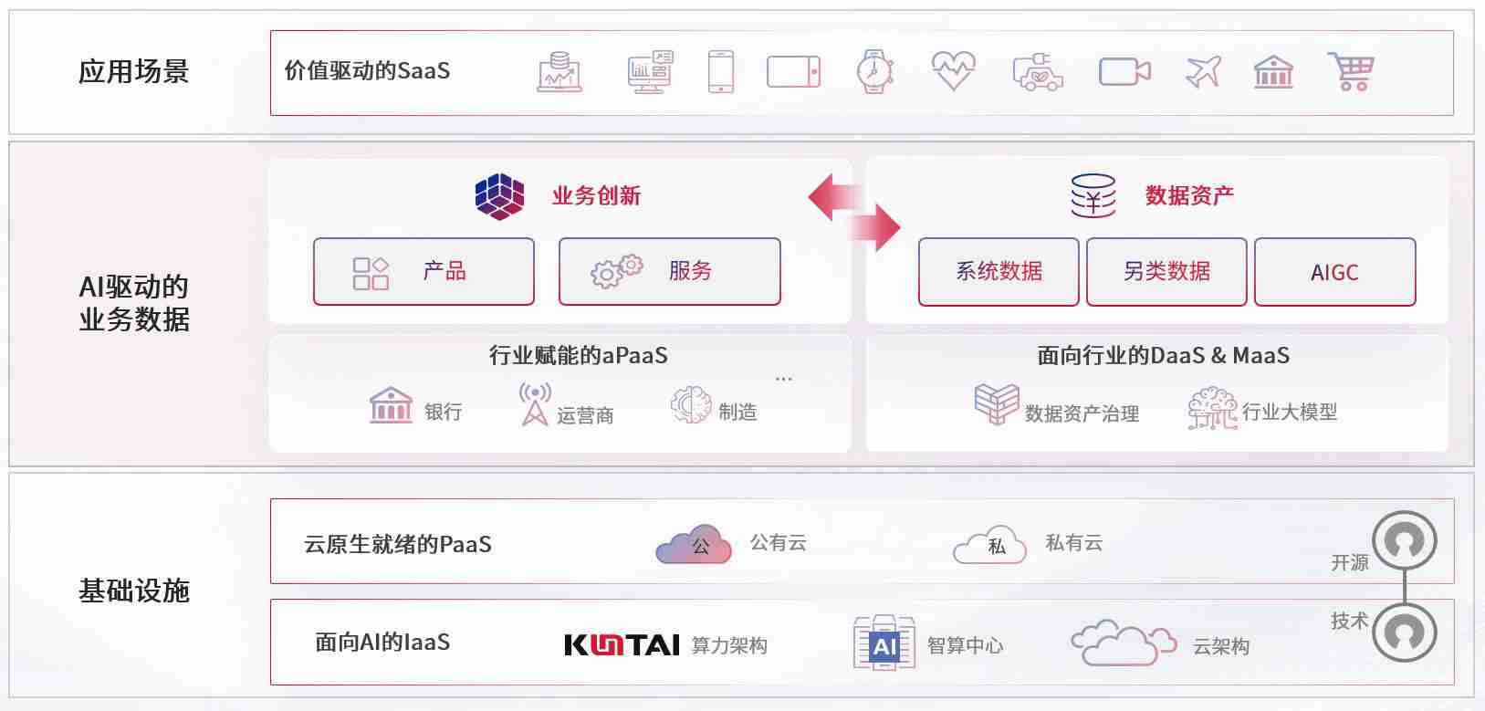 数字时代,,围绕企业数字化转型的关键要素,,,PG数码开创性的提出数云融合战略和技术体系框架,,,着力在云原生、、、数字原生、、AI原生和信创产业上架构产品和服务能力,,,,为处在不同数字化转型阶段的快消零售、、、汽车、、金融、、、医疗、、、、政企、、、、教育、、运营商等行业客户提供泛在的敏捷IT能力和融合的数据驱动能力,,构建跨界融合创新的数字业务场景和新业务模式,,助力企业级客户建立面向未来的核心能力和竞争优势,,,,全面推动社会的数字化、、智能化转型升级。。。